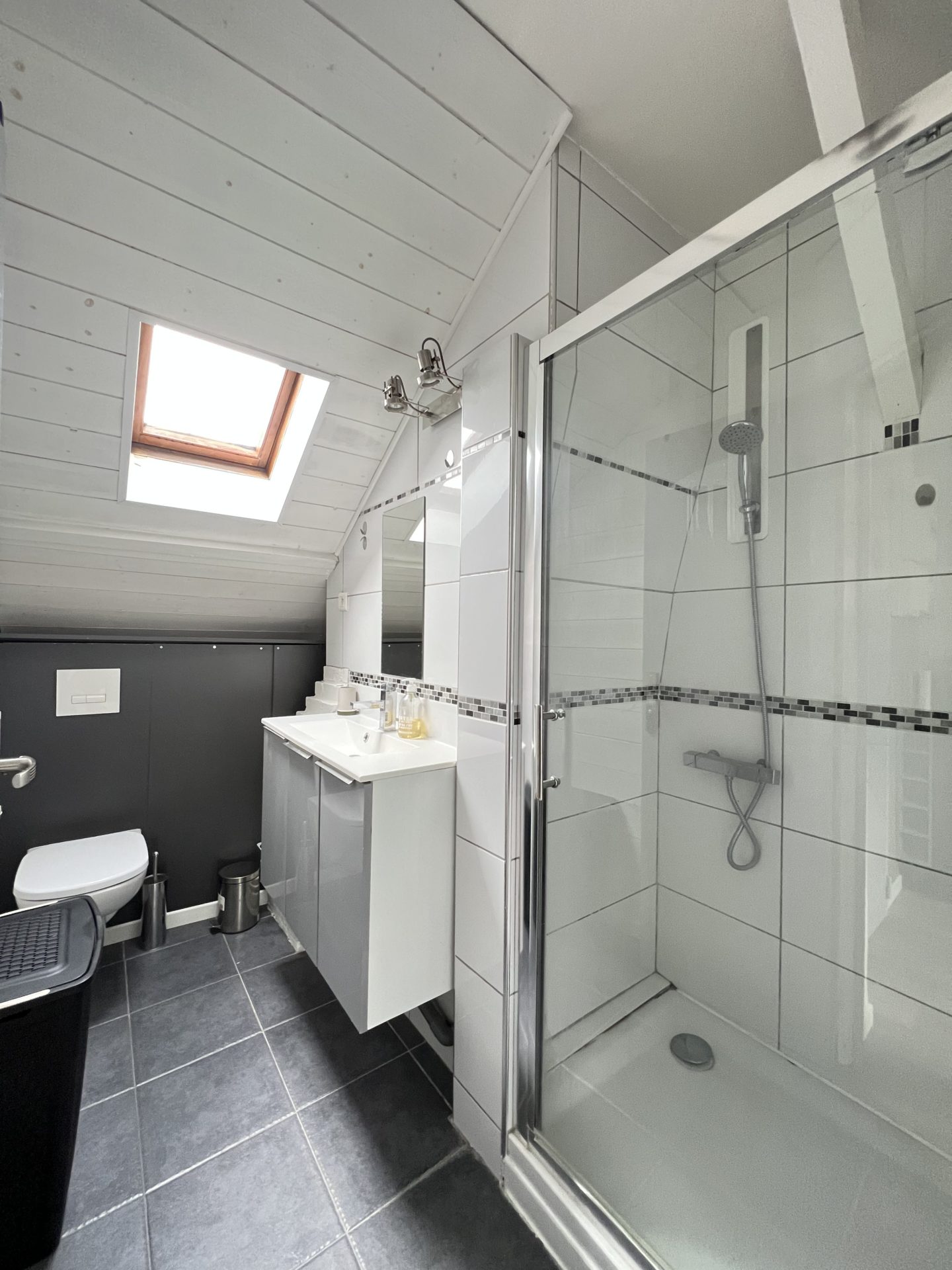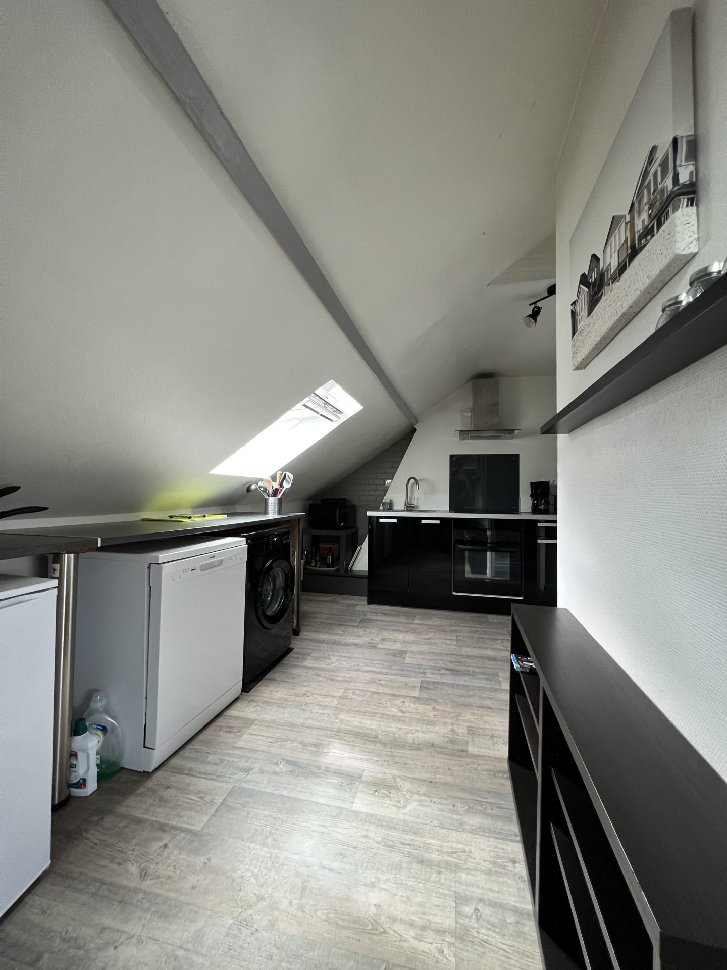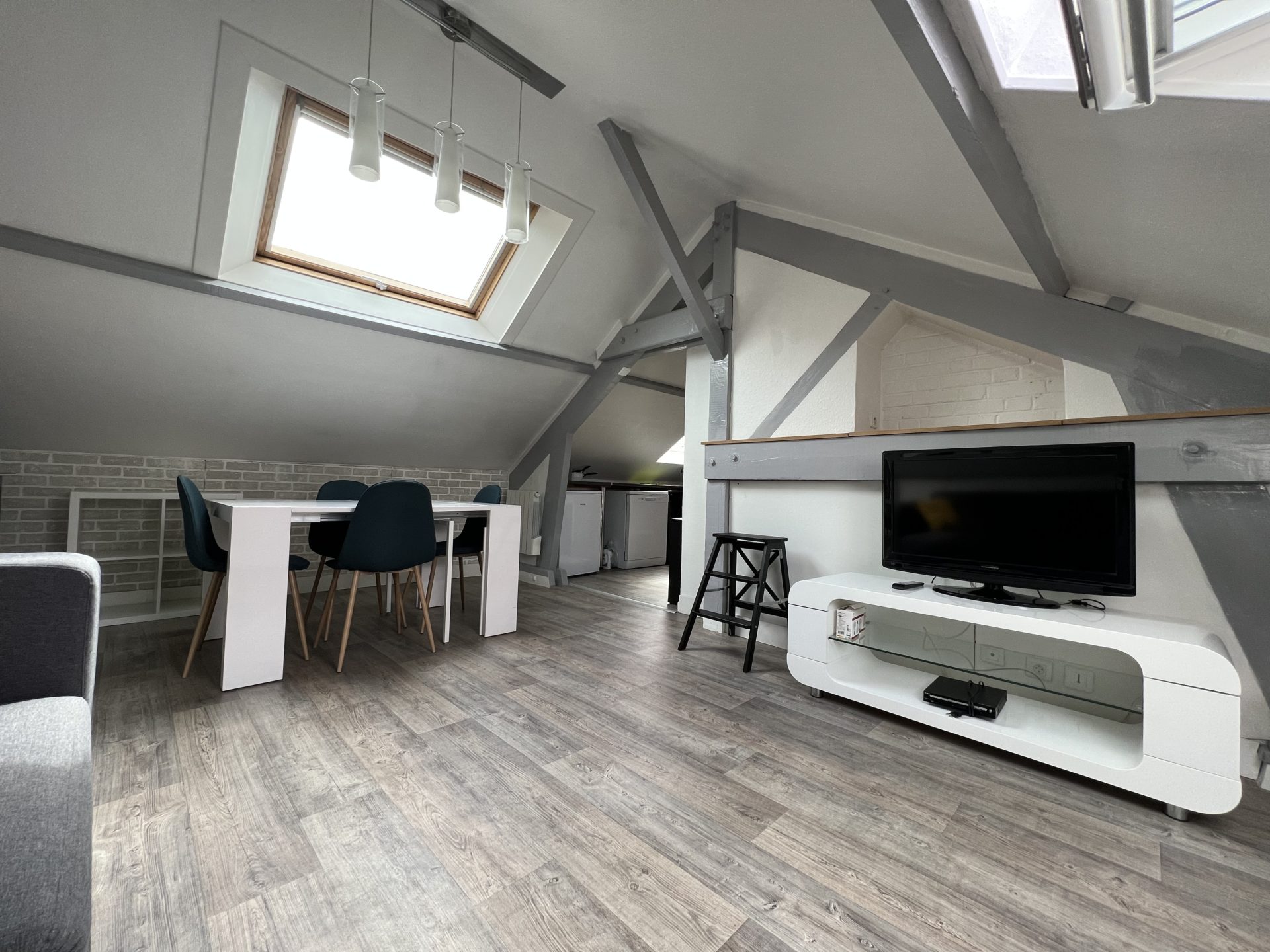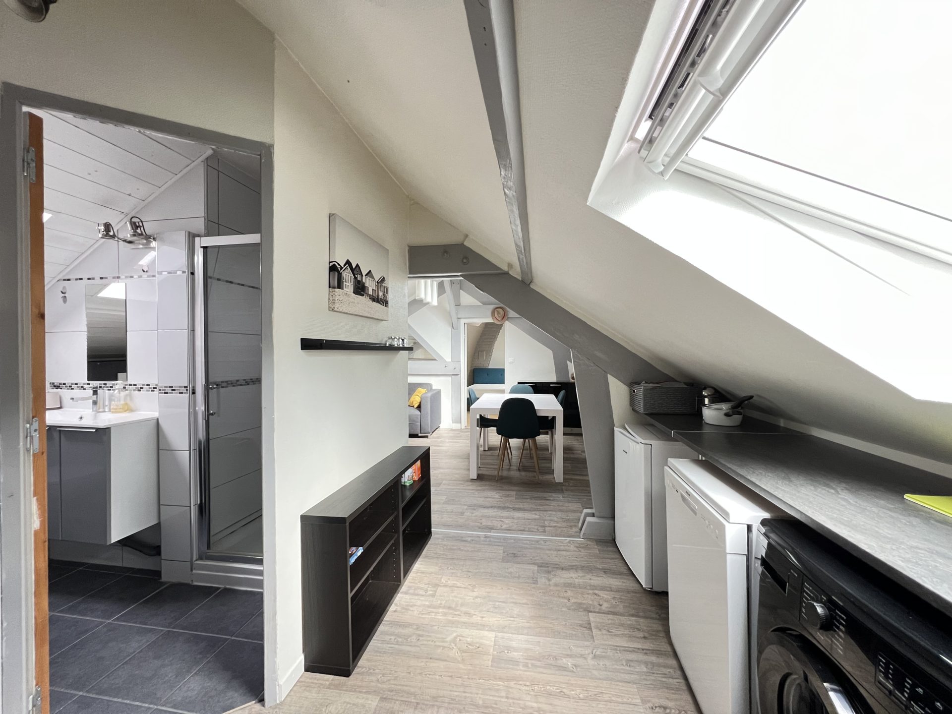 Rue Florimond Leroux, au 2ème étage d’un immeuble calme sans ascenseur, bel appartement meublé sous combles de 47 m² au sol (29,9 m2 Loi Boutin) parfaitement équipé comprenant :