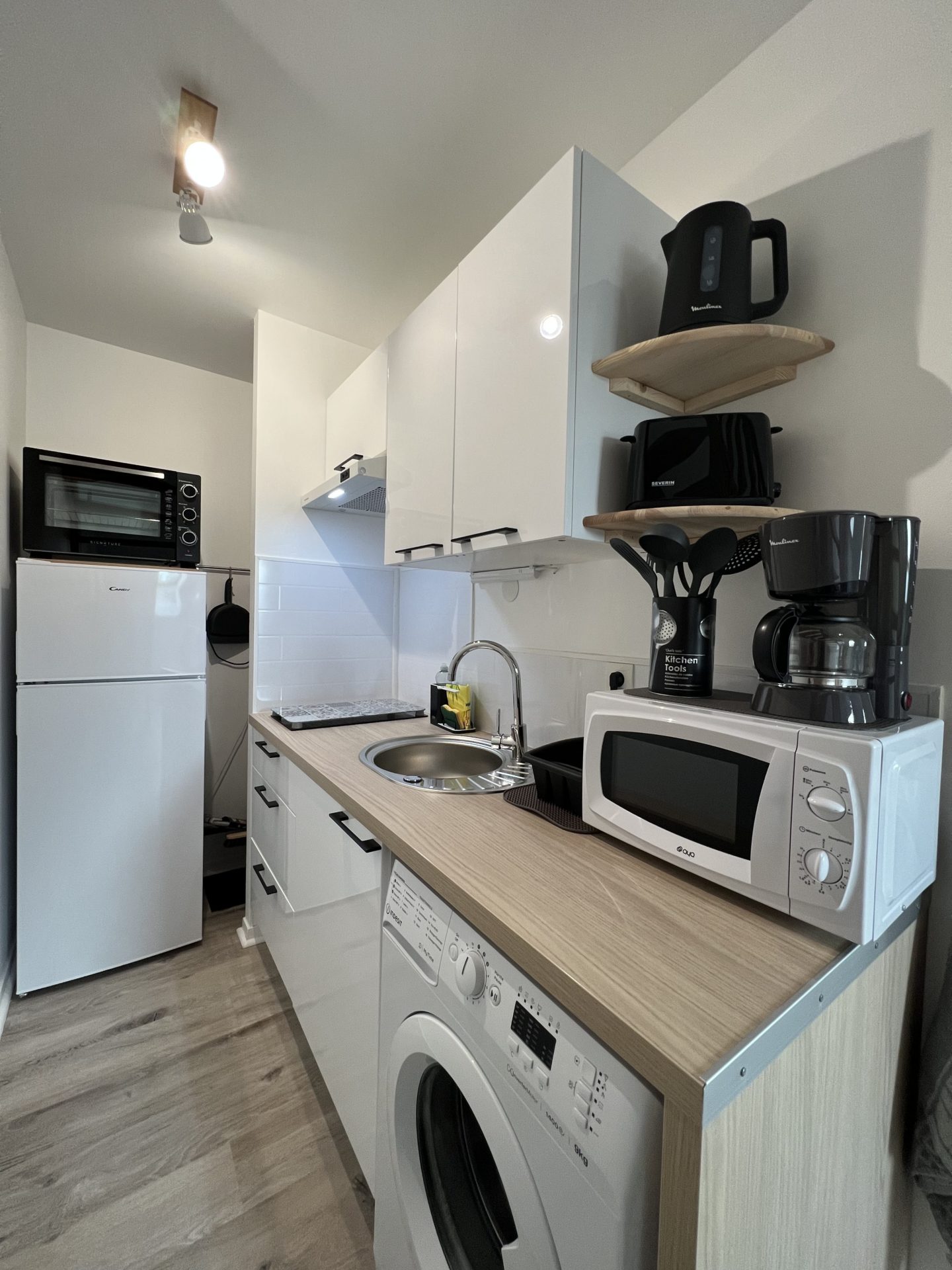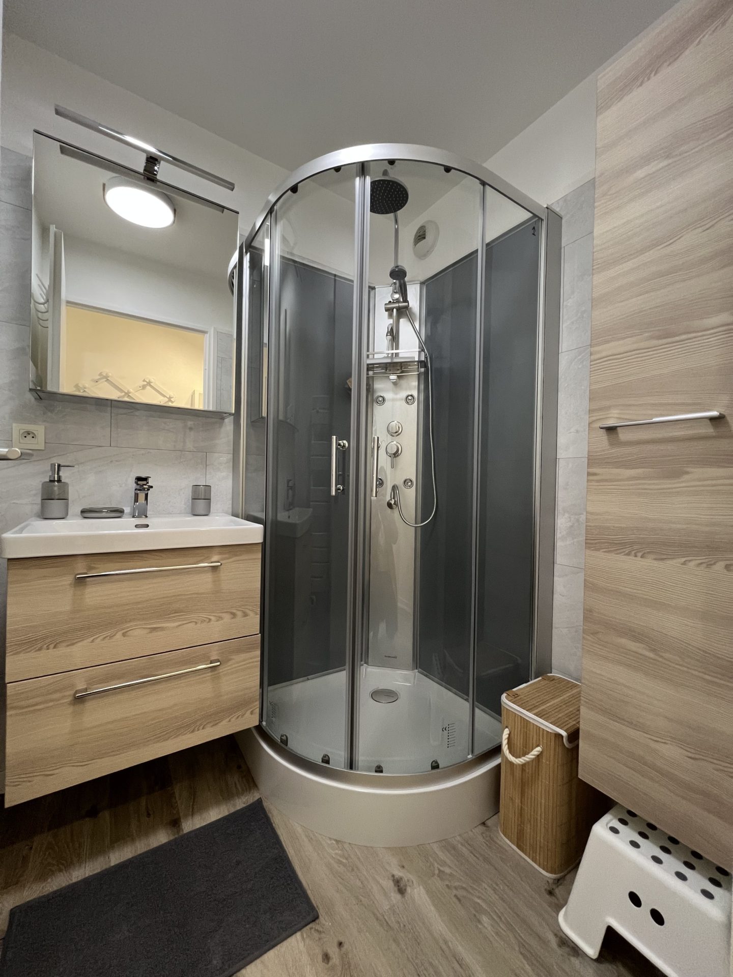 – Entrée, wc, salle d’eau, séjour lumineux ouvert sur cuisine,