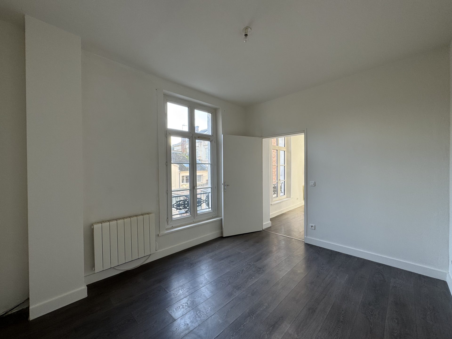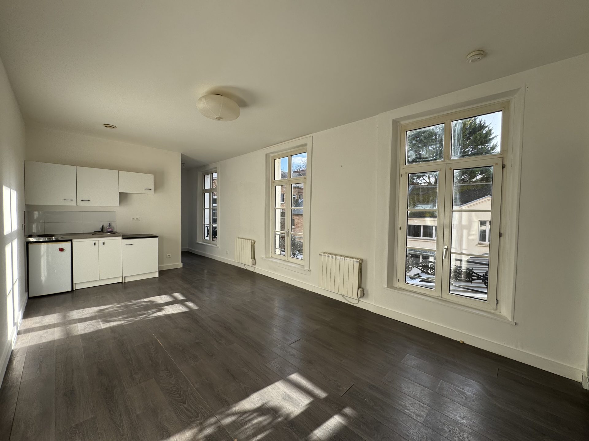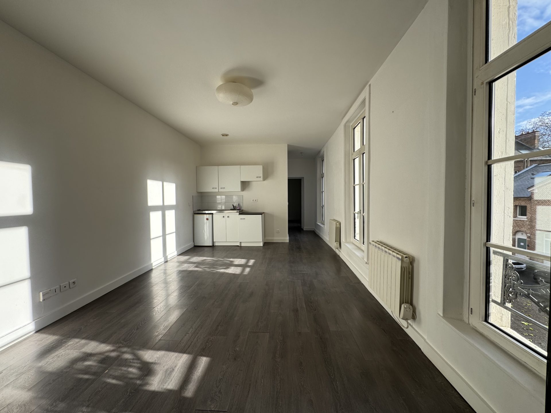 Rue Jean XXIII, entre la gare et St Leu à 3 minutes à pied du centre-ville, dans une copropriété calme, appartement T2 de 41,70 m2, au 1er étage sans ascenseur comprenant :