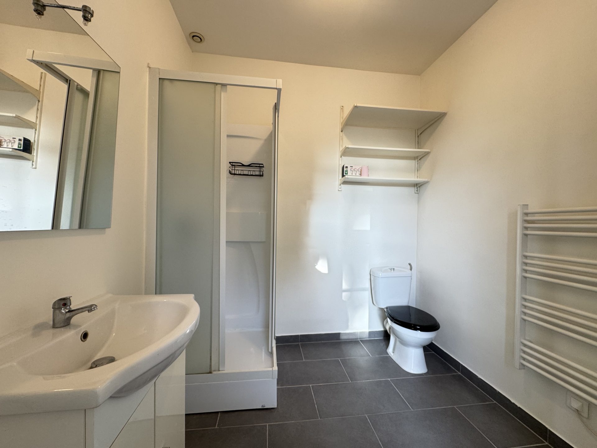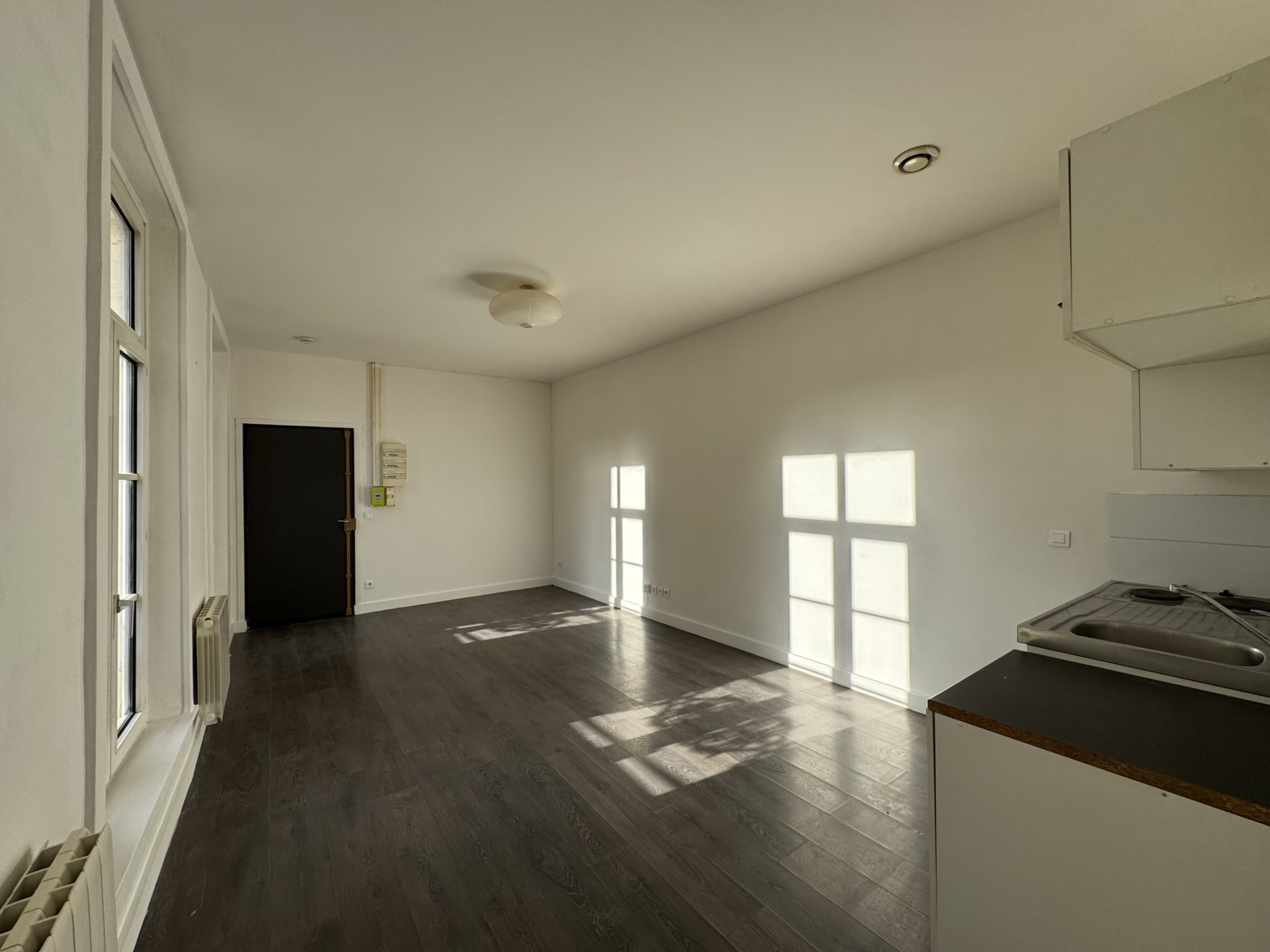– Séjour avec coin cuisine, salle d’eau avec wc, une chambre, chauffage électrique.