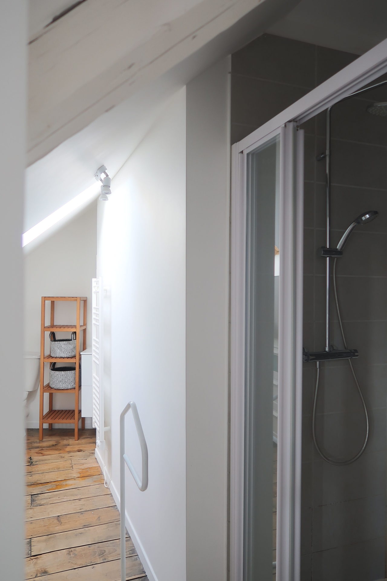 Dans un très bel immeuble rue des Jacobins, à 3 minutes à pied de la gare, au troisième étage sans ascenseur, superbe T2 sous combles de 18,66 m² (30 m2 au sol) :