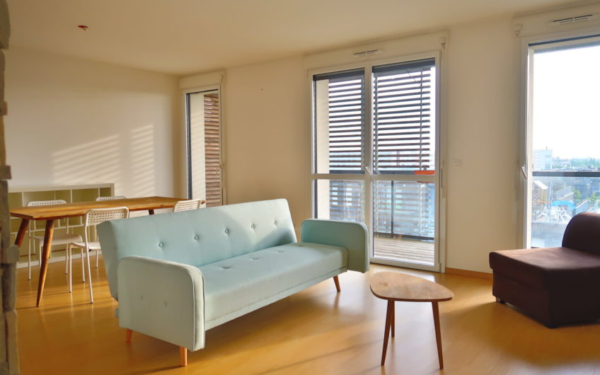 Proche des Universités, de la rocade et du CHU, appartement lumineux de 74m² au troisième étage d’un immeuble sécurisé récent avec ascenseur comprenant :